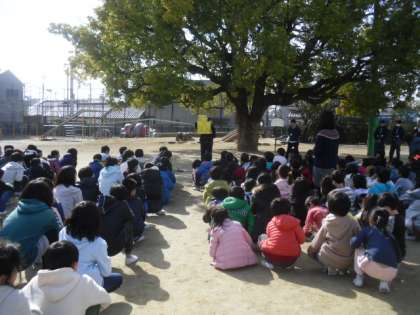 地震の後に火災が起こった時の避難訓練をしました。