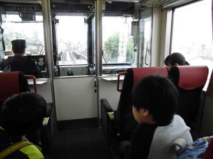 堀川御池ギャラリーを出た後は,帰りの途に着きました。また京阪で自分で切符を買いました。特急の先頭車の一番前に乗りました。子どもたちは,目の前に広がる車窓からの長めに見入っていました。