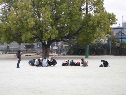必死で走って運動場の真ん中に避難したよ!