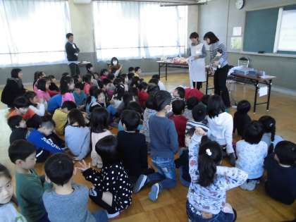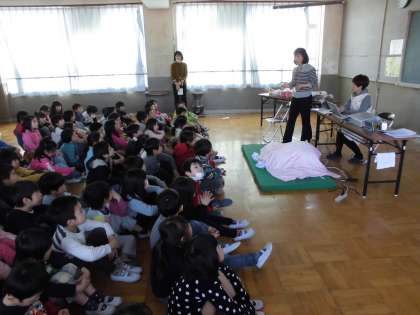 助産師さん2名が来てくださり,「命の学習」をしてくださりました。お母さんのお腹の中の様子や赤ちゃんの大きさなど学びました。「お母さんは,大変な思いをして産んでくれたんだね。」「家族に大切にされていたんだね。」などと,1年生なりに命について考えることができました。
