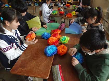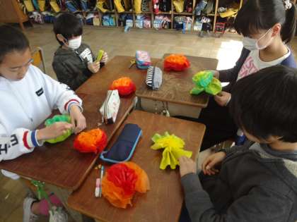 子どもたちから出たので,花飾りを作りました。