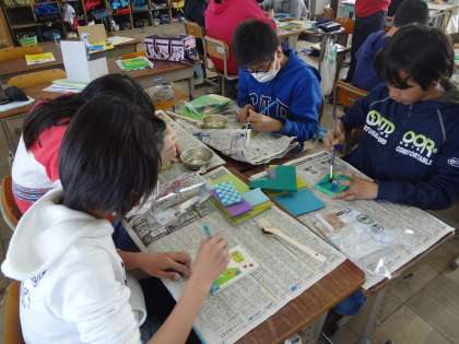 色をぬって,組み立てて,ニスをぬります。