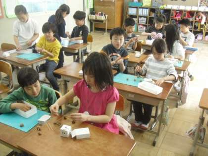 実際に工作用紙で箱を作ったり,竹ひごと粘土を使って箱の模型を作ったりしました。