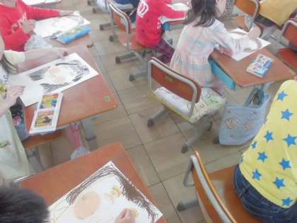2年生になってはじめての図画工作科では,「自分の顔」を描きました。参観日に,ぜひ見てほしいと思います。