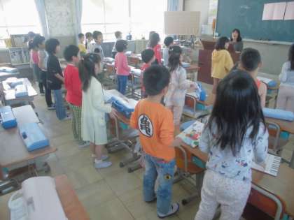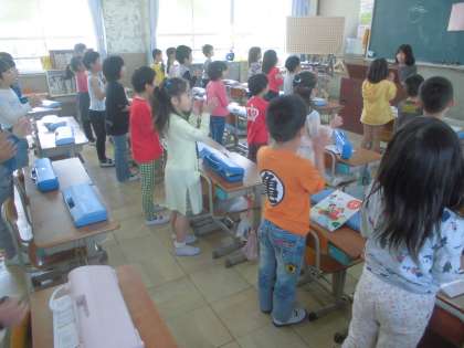 音楽の学習の様子です。手拍子を入れながら楽しく歌ったり,鍵盤ハーモニカの練習をしたりして楽しく学習しました。