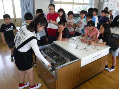 また,授業の後半では,全員にガスコンロをつける活動を取り入れ,子どもたちは安全に注意しながら一生懸命取り組んでいました1