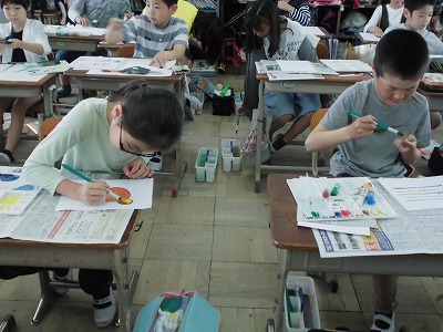 今日は,絵の具でいろんな技を使ってすてきな紙を作ることを楽しみました!
