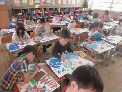 図画工作科では,「ひみつのたまご」の仕上げをしました。