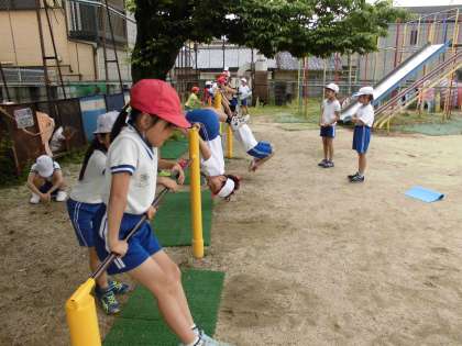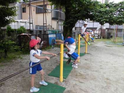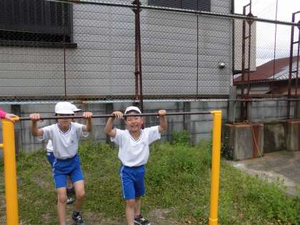 昨日の豪雨で運動場が使えるか心配でしたが、土も安定していたので元気に外へ行きました。