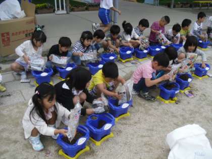 あさがおのたねをまきました。