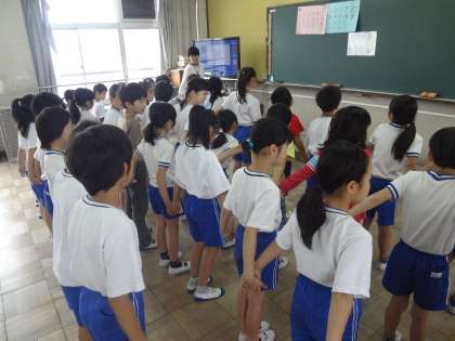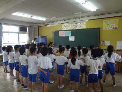 1年生を迎える会で,音楽で学習している