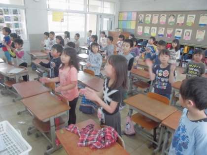 11日(金)に行われる「1年生を迎える会」に向けて練習しています。