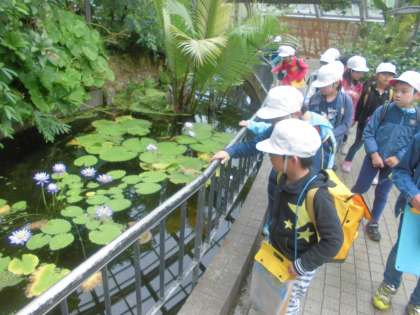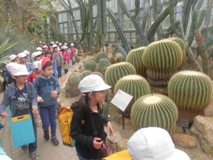 「観覧温室」では,はじめてみるバナナの木やサボテンに大興奮の2年生でした。