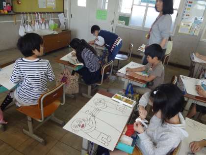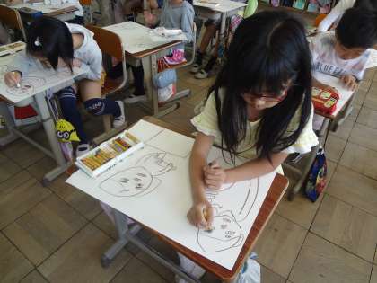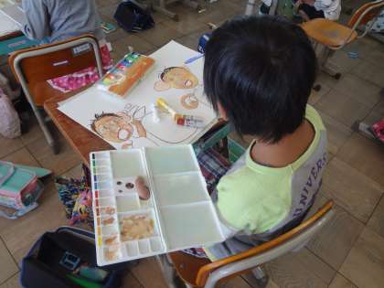 絵の具で,顔や腕の肌の色をのせるところまで進みました。