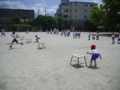 今日は,リレーのチームに分かれて,「おきかえリレー」をしました。
