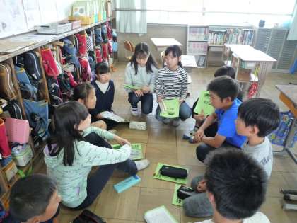 今日はしおりを配りました。
