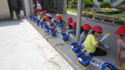 「はあとのかたちだね」「ちょうちょみたい」「なんでこんなにはやくめがでるの」「たねよりおおきくなったね」