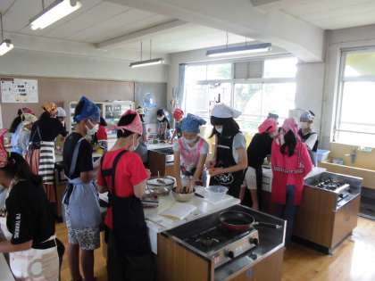 16日(水)に,家庭科室で調理実習をしました。今回はシャキシャキ食感の野菜炒めを作りました。みんなは手慣れているようで,手際よく準備をしたり,野菜を包丁で上手に切ったり,いろいろな切り方を考えたりしながら調理を進めていました。炒めていくときにも,火力に気をつけたり,味見をしながらしっかりと味付けをして,なんとか無事に野菜炒めを作ることができました。調理実習後の感想を見ると,「玉ねぎに味がしみていておいしかったです。」