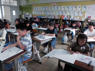 パス,サインペン,クーピー,描く道具も自分で考えました。