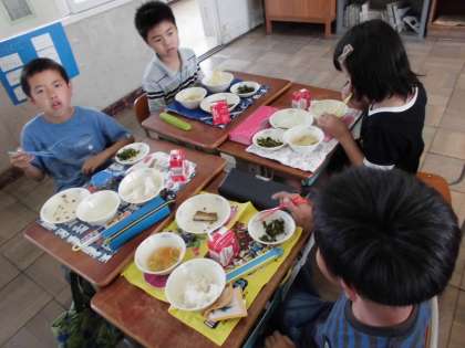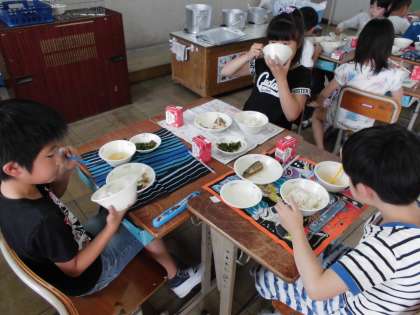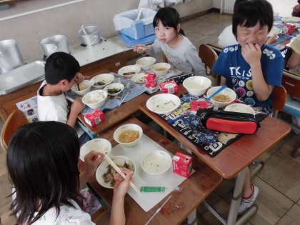 いつもよりおかわりは少なかったですが、みんな残さずに食べていました。