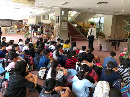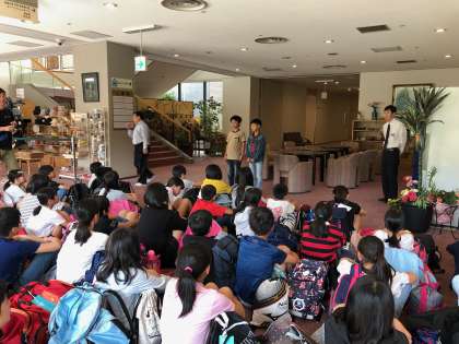 お世話になったホテル「サントピア岡山総社」をいよいよ出発します。退館式には,ホテル方からもお話をしてくださいました。ありがとうございました。
