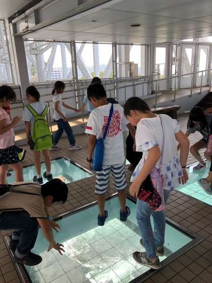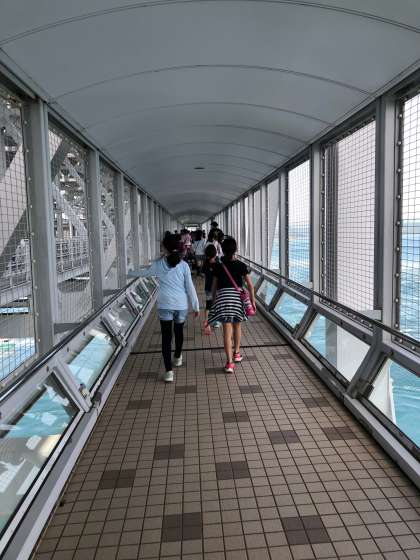 ガラス床の上はすごい迫力なのと上を高速の車が通るので揺れるたびに怖かったです。
