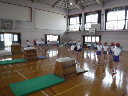 今日は開脚とびの練習でしたが,久しぶりのとび箱ということもあり,怖さから思い通りにいかない子どもたちもいましたが,一生懸命挑戦していました!