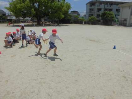 体育学習では,「リレーあそび」をしました。