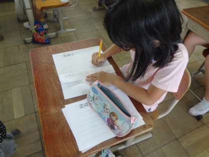 今日の書写は,硬筆書写の清書でした。