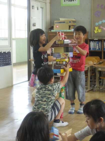 グループの友だちと協力して,きりんや,タワーや・・・と,楽しみながら活動していました。