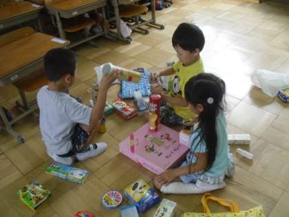 集めていただいた空き箱等を使って,すきなものを作りました。
