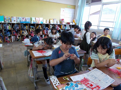 ふだんすることのない作業のためか,導線からビニールをはがすことにもとても苦戦していました。そのあとも部品と導線をどうつないでいいのか迷い,