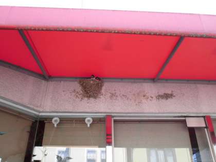 親ツバメが来るまで少し待ってみましたが、暑くてこちらがギブアップ。