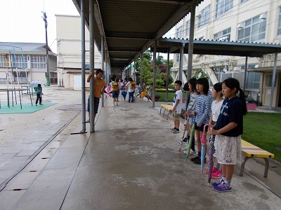 3日目はあいにくの雨でしたが,渡り廊下で元気にあいさつしてくれました!