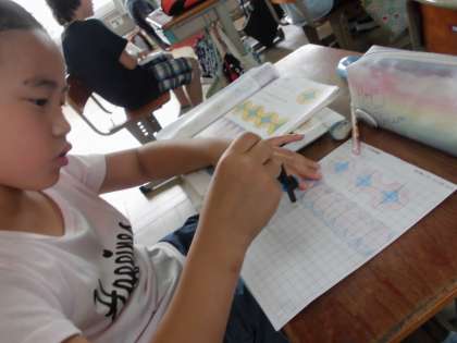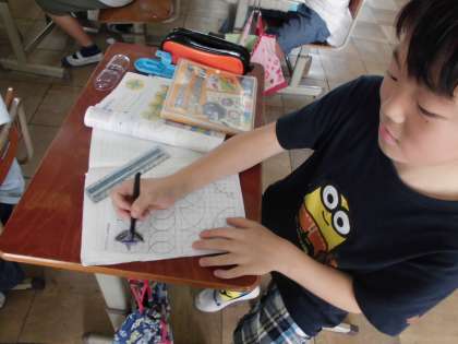 今日はコンパスを使ってもようづくりをしました。