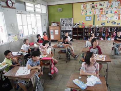 Any volunteers?と聞くと、たくさん前でやりたい人がいました。