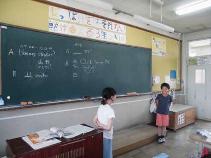 という会話をし、Aさんが相手の書いた漢字を予想するペアワークをしました。