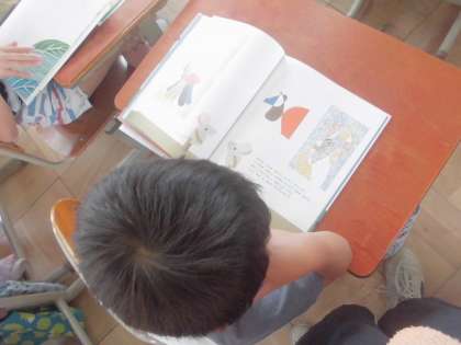 国語の学習では,「スイミー」の学習に入りました。レオ=レオニさんのお話と絵をたのしんでいます。