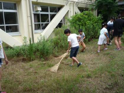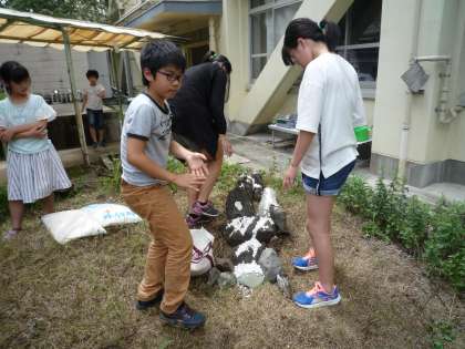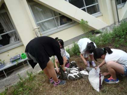 理科室前の砂場で庭園つくりをしました。