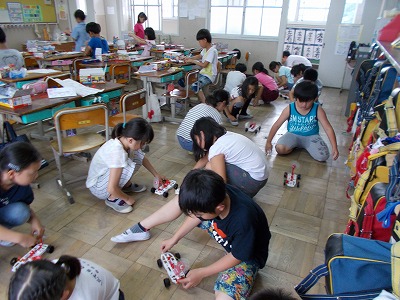 苦労して作っただけあって,プロペラが回ったり車が動いたりした時,子どもたちは大喜びでした!