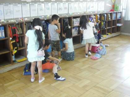 整理整頓 公開日 2018/06/14 更新日 2018/06/14 1年生の部屋 道徳の学習で,「整理整頓」について学習しました。 学習のあと,「きれいにしたい!」という気持ちが高まったようで,自分の机の中やロッカー,本棚,雑巾かけ,水筒の籠・・・とみんなで整理整頓しました。 教室もみんなの心もとてもすっきりしました。