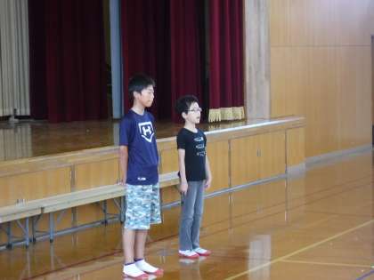 児童朝会 公開日 2018/06/14 更新日 2018/06/14 5年生の部屋 今日の児童朝会の司会は,5年生の計画委員が担当しました。 インタビューをしたり,発表の感想を言ったり,初めての司会ではありましたが,堂々としてくれました。 聞いている5年生も静かに聞き,立派な態度で素晴らしかったです。