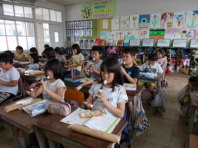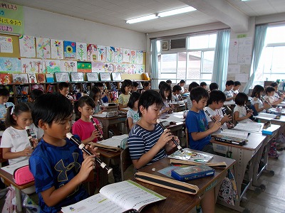 音楽はリコーダーで「陽気な船長」の練習をしています。