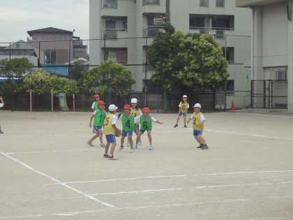 体育 エンドボール 公開日 2018/06/19 更新日 2018/06/19 3年生の部屋 今日は,1組と2組合同で体育をしました。 エンドボールの学習です。 6チームで2試合ずつ対戦しました。 ガードマンの動きとゴールマンの動きの工夫で 点数が入ったり入らなかったりすることに気付いていました。 次の時間は,フォワードが有利な場所に動いて 味方からパスをもらう工夫に気付いてほしいと思います。 合同体育も,学級ごとの体育もがんばりましょう。