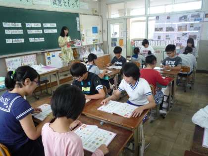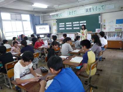 中原先生と外国語の学習 公開日 2018/06/22 更新日 2018/06/22 6年生の部屋 年に8回だけですが 中学校の中原先生に来ていただき 外国語を教えていただいています。 この日は,5年生の時の復習をしたり 新しい学習をしたりと 楽しく学習をすることができました。 5年生の時に比べると ずいぶんと聞き取る力がついてきたように思います!