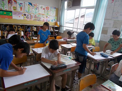 国語の新聞作りは,取材から記事の下書き,さらに画用紙へ書く作業に進んでいます。