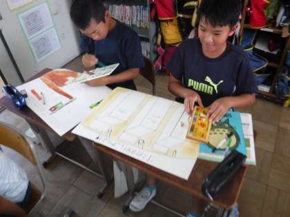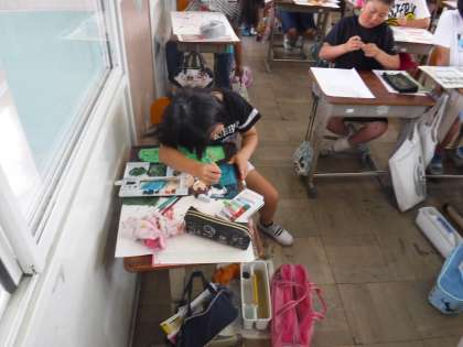 仕上げです! 公開日 2018/06/25 更新日 2018/06/25 5年生の部屋 3時間目の時間に,図工のポスターに取り組みました。 今日の時間が仕上げの時間になるので,細かい部分までクレパスや絵の具,ペンを使って丁寧に仕上げることができました。