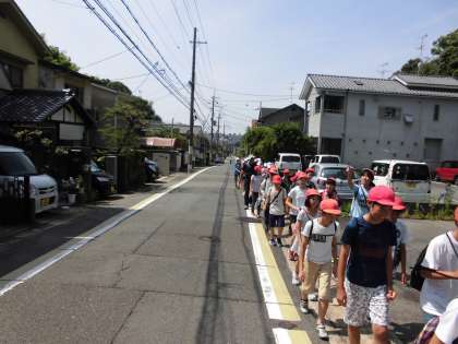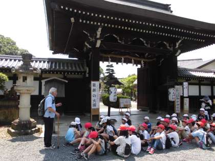 6月26日(火)に6年生のみんなで「伏見桃山の歴史調べ」に出かけました。総合の時間には,郷土の歴史や特色などについて,故郷の歴史を調べていこうと考えています。前回は雨で延期をしたのですが,本日は天候にも恵まれて,真夏のような日差しのとても良いお天気の一日でした。子どもたちは,こまめに水分を取りながら,汗をかきかき頑張って歩きながら,いろいろな伏見に残る遺跡を訪れました。伏見のいろいろな歴史の時代の様子を想像することができたように思います。