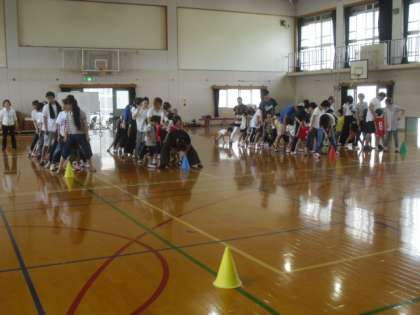 「ボール送りゲーム」も「じゃんけん列車」も,親子ともに楽しめたようすでした。