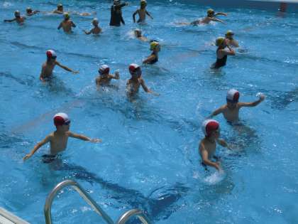 元気にプールで泳ぎました。